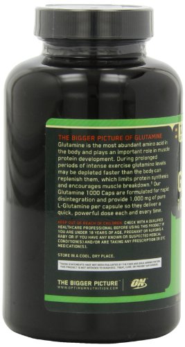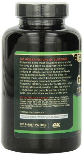 la nutrición óptima glutamina 1000 mg, 120 cápsulas son el aminoácido más abundante en el cuerpo y ayudan a la recuperación muscular de apoyo